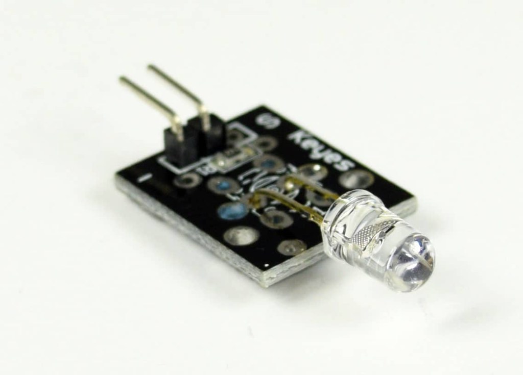 Jenis LED yang sama digunakan pada papan breakout pemancar IR untuk Arduino. Anda dapat melihatnya di bagian depan pemancar IR Keyes ini:
