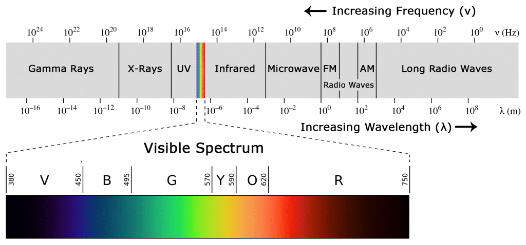 Radiasi inframerah adalah bentuk cahaya yang mirip dengan cahaya yang kita lihat di sekitar kita. Satu-satunya perbedaan antara cahaya IR dan cahaya tampak adalah frekuensi dan panjang gelombang. Radiasi inframerah terletak di luar jangkauan cahaya tampak, sehingga manusia tidak dapat melihatnya: