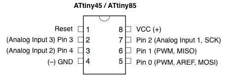 Kami sedang mengerjakan proyek yang mengharuskan membaca beberapa data sensor di lokasi yang berbeda. Ini hanya membutuhkan beberapa pin PWM sehingga menggunakan beberapa Arduino Uno akan mahal dan tidak perlu. Jadi kami memutuskan untuk menggunakan mikrokontroler ATtiny85 sebagai pengganti papan pengembangan Arduino Uno. ATtiny85 adalah alternatif yang murah dan kuat ketika Anda tidak membutuhkan terlalu banyak pin PWM. Karena ATtiny85 hanyalah mikrokontroler, kami memerlukan Arduino Uno untuk memprogramnya. Dalam proyek ini kami akan menjelaskan bagaimana melakukannya. Di bawah ini adalah konfigurasi pin ATtiny85 dan datasheet dapat ditemukan di sini