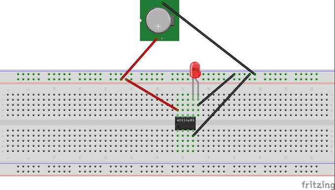 Sekarang waktunya untuk menguji. Hapus semua koneksi dari Arduino dan ambil sumber daya. Di sini saya akan menggunakan sel tombol untuk menyalakan ATtiny85.