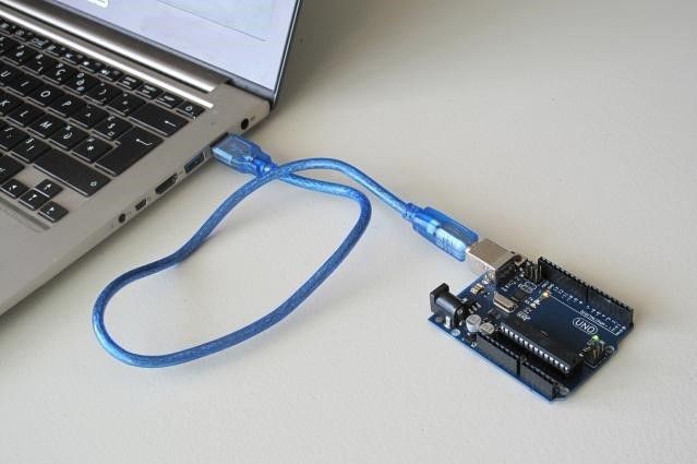 Anda hanya perlu menghubungkan papan ke komputer dengan kabel USB.