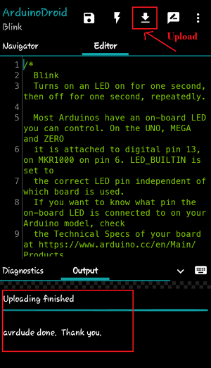 Sketsa baru sekarang harus diunggah ke papan lagi. Jika semuanya berjalan dengan baik, LED sekarang harus berkedip lebih cepat.